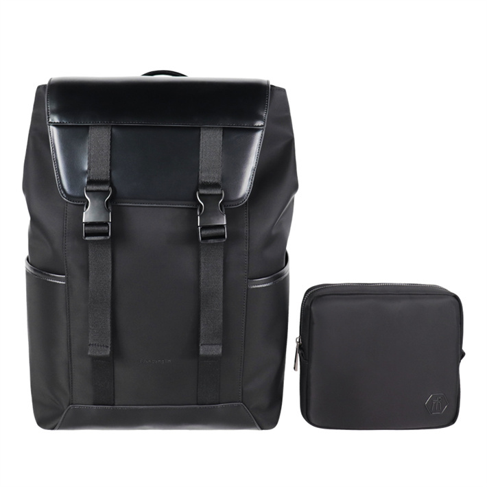 通過(guò)Bsci驗(yàn)廠定制水洗尼龍水松料背包 可拆卸前袋 pu皮翻蓋平臺(tái)展業(yè)電腦包