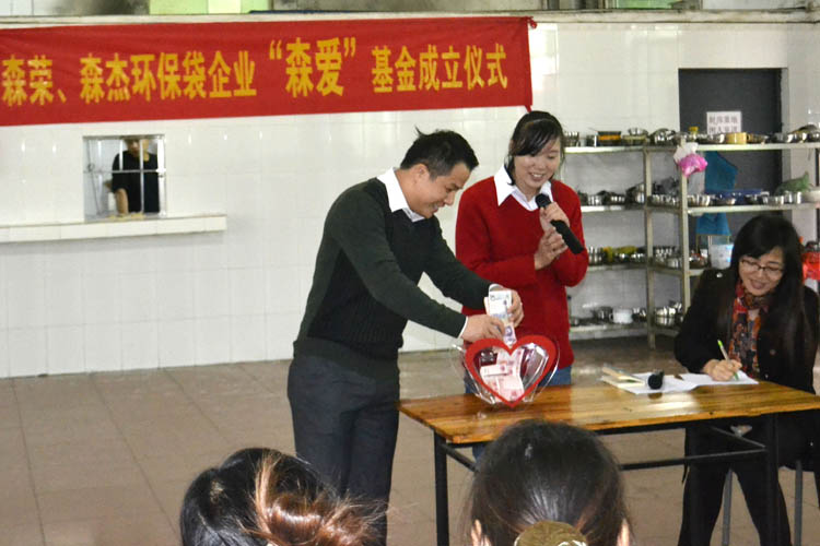 2012年12月3日這一天廣州市森榮手袋制造有限公司、廣州森杰無紡布制品實業(yè)有限公司正式成立“森愛基金”。