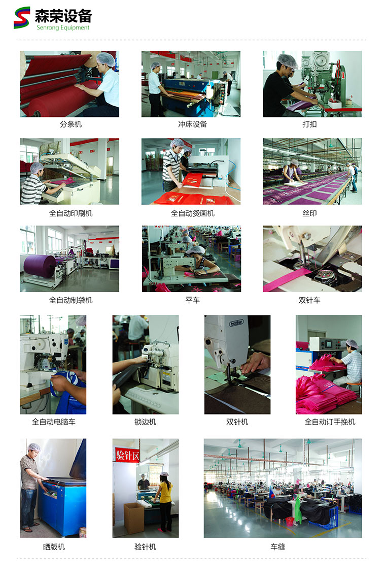 主要生產(chǎn):手袋,環(huán)保袋,真皮|PU皮手袋,無(wú)紡布袋,牛津布袋,尼龍袋,帆布袋,棉布袋,麗新布袋,竹纖維布袋,經(jīng)緯紙袋,石頭紙袋,針刺無(wú)紡布袋(毛氈布袋),絨布袋,編織覆膜袋,覆膜無(wú)紡布袋,酒袋,服飾包裝袋,西服套,圍裙,熱轉(zhuǎn)印袋,保溫袋(冰袋),防塵套,超聲波熱壓袋,玩具公仔袋等車縫制品。