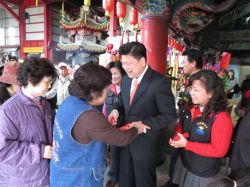 花蓮縣長傅昆萁今天由縣府民政處副處長蕭明甲、警察局長艾鵬、市長田智宣及多位民意代表陪同,前往花蓮市帝君廟、城隍廟、福安廟、吉安鄉(xiāng)勝安宮、慈惠堂、慈安宮等六座宮廟發(fā)放「十全十美」福袋,祝福每位鄉(xiāng)親一整年福氣連連。傅縣長表示,花蓮縣太平洋燈會今年已邁入第二屆,卻在藍虎鯨與紅面鴨的加持下打響名號,成功帶動市區(qū)六期重劃區(qū),及鯉魚潭周邊商機,而十三鄉(xiāng)鎮(zhèn)主要街道上的大紅燈籠也讓所有回到家鄉(xiāng)的游子及游客,感受到花蓮的魅力。 今天雖然飄著綿綿細雨,卻不減鄉(xiāng)親排隊領取縣長福袋的意愿。傅縣長表示,福袋裡有象徵十全十美的拾元「錢母」,供鄉(xiāng)親于宮廟香爐前「過火」,帶來一整年金運鴻財,讓「錢子錢孫」源源不絕。他希望,花蓮能漸漸走出自己的特色,成為臺灣面對太平洋的第一道東大門;另外,南濱夜市的攤商已轉到六期重劃區(qū)旁的彩虹夜市重新開張。 至于,自由街日出香榭大道、重慶市場、南北濱公園,花蓮縣政府都將會有整體規(guī)劃。他說,未來以嶄新風貌重現(xiàn)花蓮市風華,至于國際觀光酒場及影城等大型建設,也將會在年中破土動工,可望為花蓮創(chuàng)造上千個就業(yè)機會。傅縣長期許,甲午年在世界和平、經濟穩(wěn)定下,一定能蓬勃發(fā)展,而花蓮在觀光、有機農業(yè)與地方建設,都會有大格局,他期許花蓮開花結果、大家歡喜過活外,也希望上天神祇能繼續(xù)庇右花蓮。
