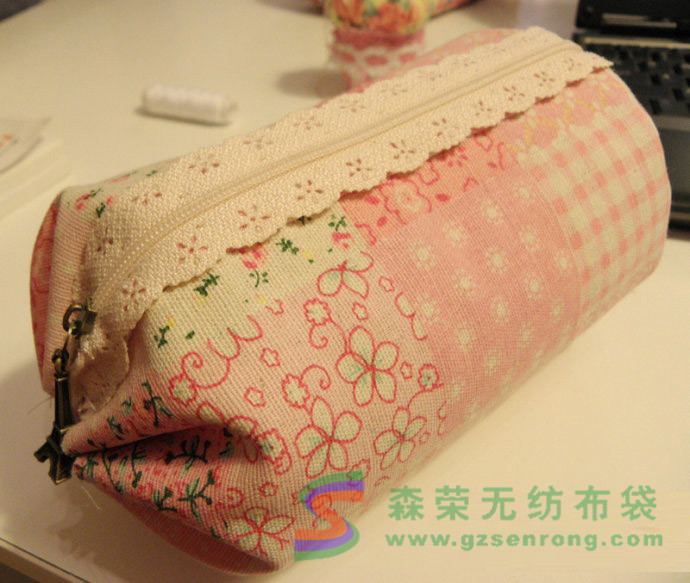 其實(shí)這款化妝包非常簡單,不懂針線的朋友也可以輕松做出來,而且收納功能很強(qiáng),圓柱體的體積在立方體里是最大的,因此你會(huì)驚訝的發(fā)現(xiàn)好多化妝小物都能輕松收納進(jìn)去,當(dāng)然也可以用作筆袋,手機(jī)包等等。歸納起來,整個(gè)制作過程可以分為三步:一,表布和里布縫合;二,收緊兩頭做出圓筒狀;三,加上裝飾和提手。
