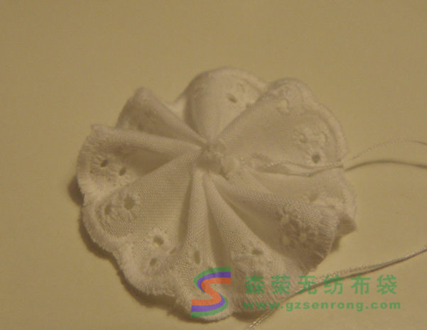 接下來我還加了一圈花邊,做成一朵小布花: