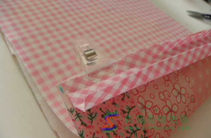 這款化妝包最大的優(yōu)點(diǎn)在于包型簡單,表布,里布和鋪棉只需要裁成矩形或者正方形即可。至于長寬的尺寸,建議大概在20cm左右即可。將表布,鋪棉和里布對(duì)好,在裁的時(shí)候注意表布由于要包過來,而且考慮到鋪棉的厚度,可以比里布的長度略長,但也不是必須。鋪棉如果是帶膠的,就直接熨好使三層粘合好。不是帶膠的也沒關(guān)系。
